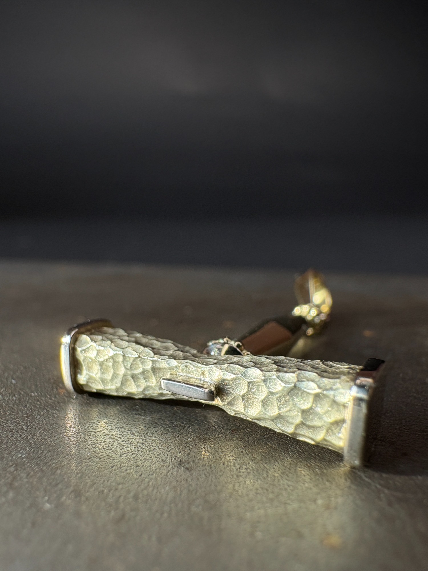 Geile Schnallen und dicke Lederriemen. Bei mir gibts keine Beschichtung, die nach der Zeit abplatzt. Nur robuste Schließen mit entsprechendem Gürtel, welchen man natürlich mal erneuern kann/muss. In der Regel fertige ich meine Gürtelschließen aus Silber, dick genug um eine gewisse Haltbarkeit zu garantieren. Natürlich auch in Gold oder Platin machbar. Leicht zu handhaben, sowohl beim Schließen als auch beim Öffnen.
